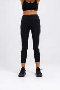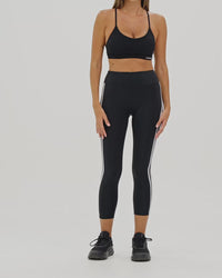 A sleek ankle-length legging with a clean, sculpted fit that feels effortless all day. Finished with bold side stripes for a sharp, sport-led edge, it’s made to move with you and style with everything.
