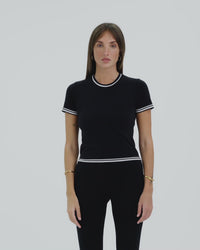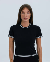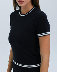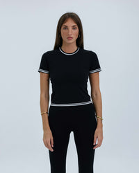 A sleek essential with a flattering fitted cut and contrast stripe details. Soft, stretchy, and effortlessly stylish - perfect for elevating your everyday look with a clean, confident edge.