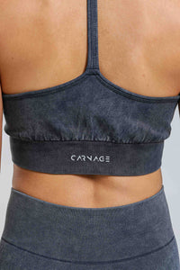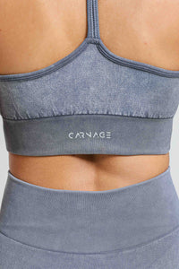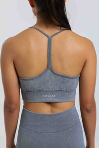 Sleek, seamless, and sculpting - this ribbed sports bra blends style and comfort with a washed grey finish, perfect for athleisure and light training.