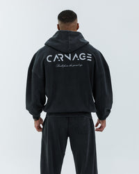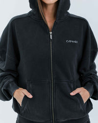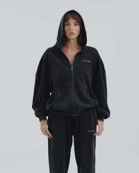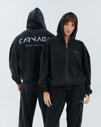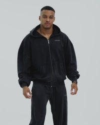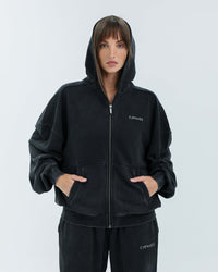 Wrap yourself in comfort with this oversized zip-up hoodie, crafted from premium heavyweight cotton for a soft, structured feel. The washed black finish and bold branding bring effortless street style to everyday wear.