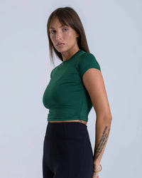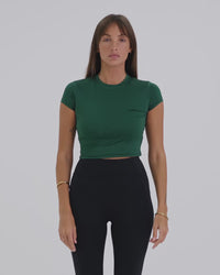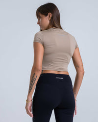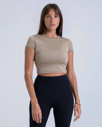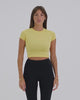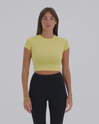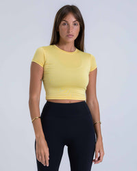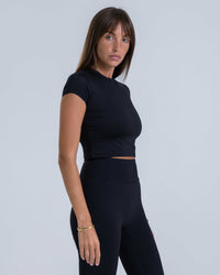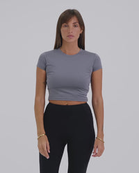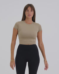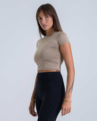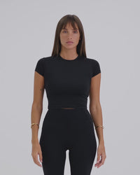 A sleek, body-hugging activewear baby tee with a soft, breathable feel. Lightweight and comfortable, it’s designed to move with you and transition effortlessly from workouts to everyday wear.